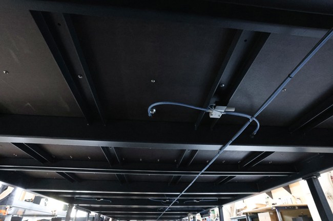 Der patentierte Vakuum-Speicher befindet sich in der stabilen Metallkonstruktion des Infinity-Vakuumtisches. Er besteht aus Formrohren mit Hohlräumen. Dieser riesige Vakuumspeicher garantiert einen zeitlich punktuellen Vakuumaufbau und somit einen schnellen Anpressdruck. Da sich sich der Vakuum-Speicher in der Unterkonstruktion der Nutzfläche befindet, richtet sich sein Volumen immer perfekt nach der Maschinengröße.