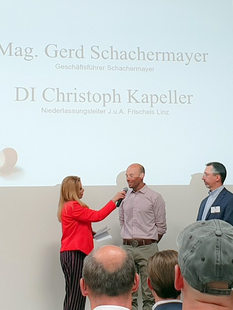 The internationally successful speaker in marketing matters, Michael Ebeert, discussed in the scope of his presentation, that it is now the time, that carpenters should stop to control their sales arguments over the price, but start to control them instead over a „profile sharpening“ i.e. over the product differentiation. Together with the managing director of Frischeis, he emphasized several times that vacuum technology from Columbus was the ideal tool for this purpose.